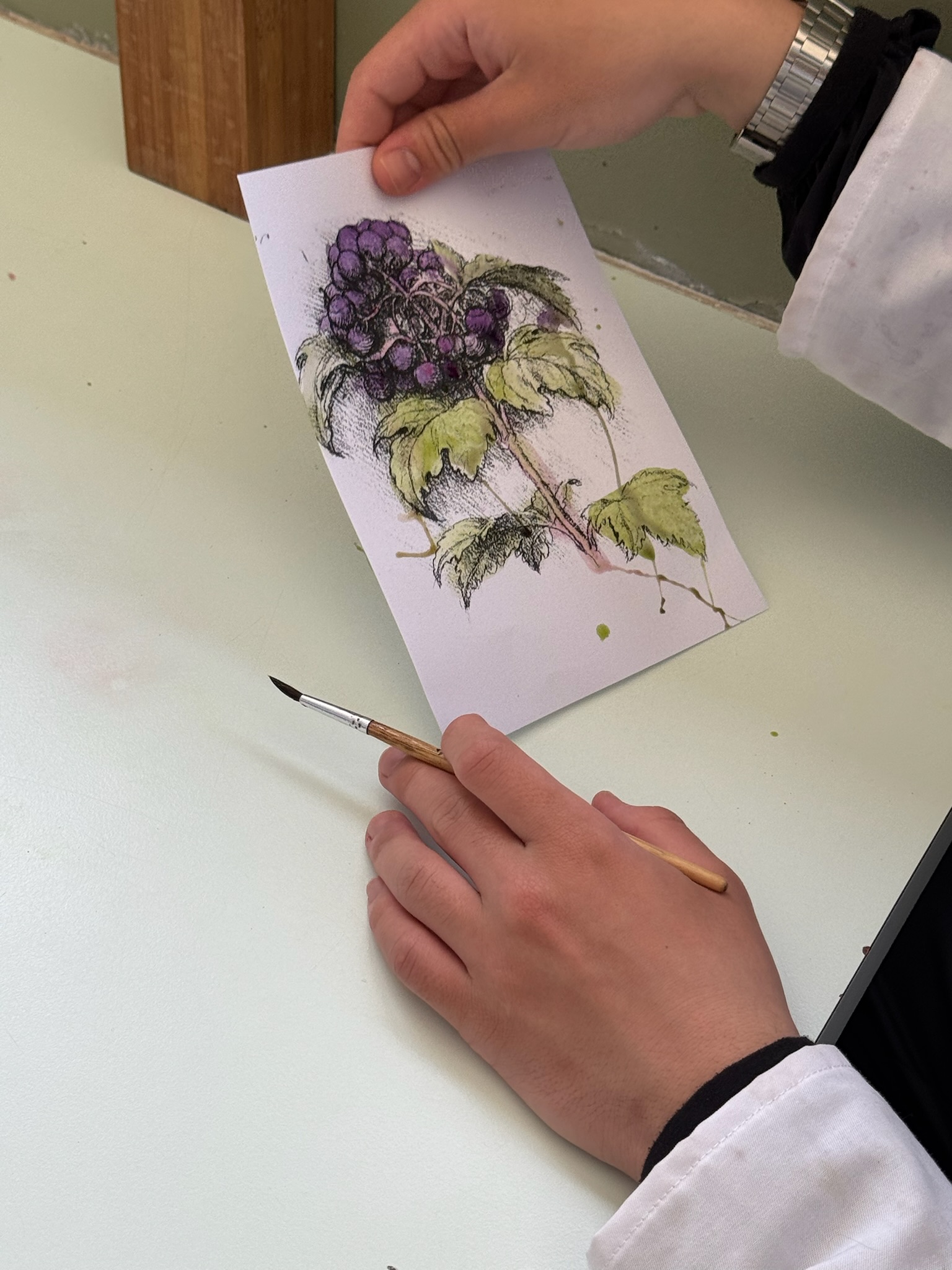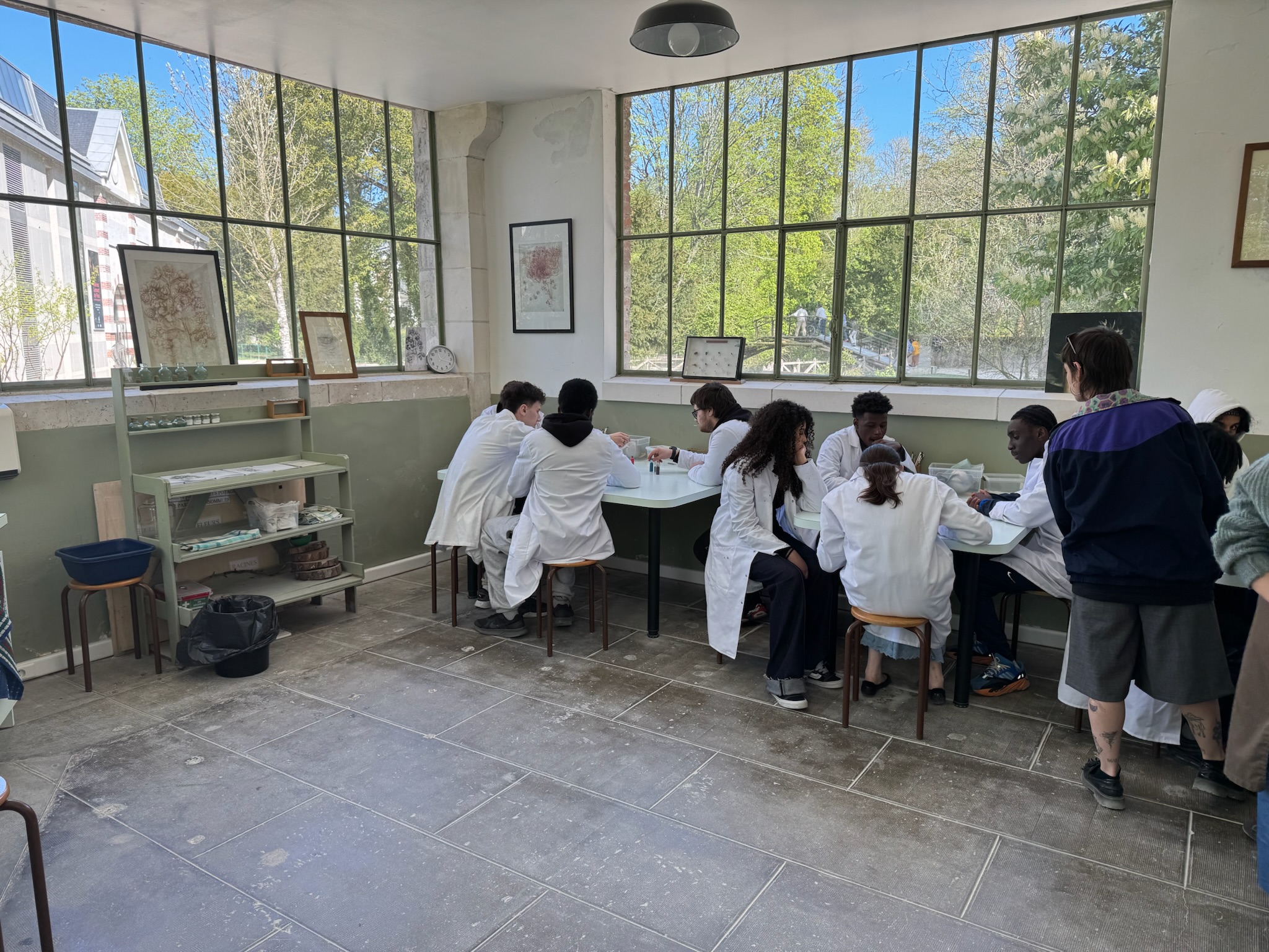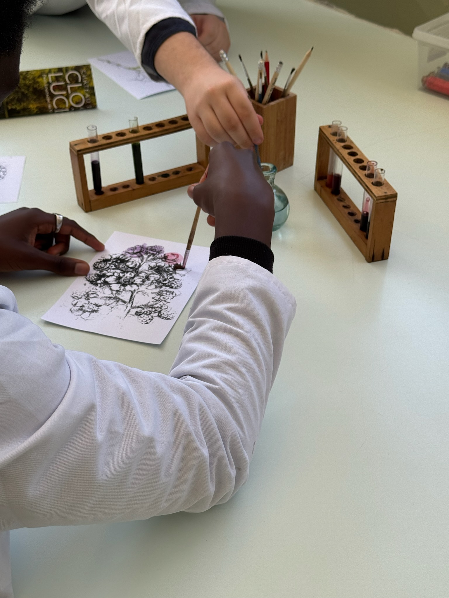 Après cette visite, les élèves ont participé à deux ateliers : le premier était consacré à la fabrication de pigments naturels, une technique utilisée à l’époque de Léonard de Vinci. Les élèves ont pu moudre des minéraux et des végétaux pour créer leurs propres couleurs.