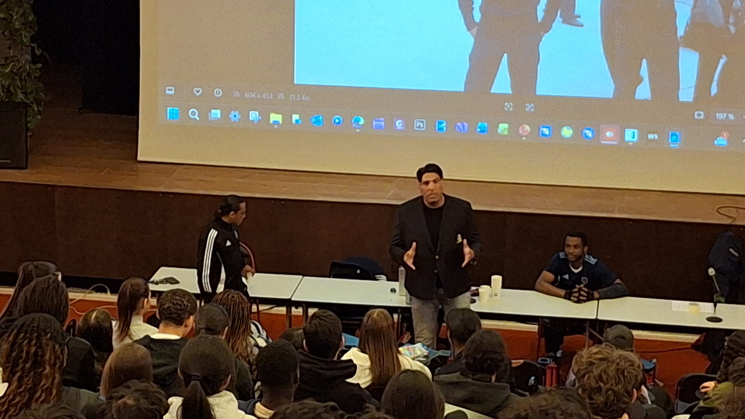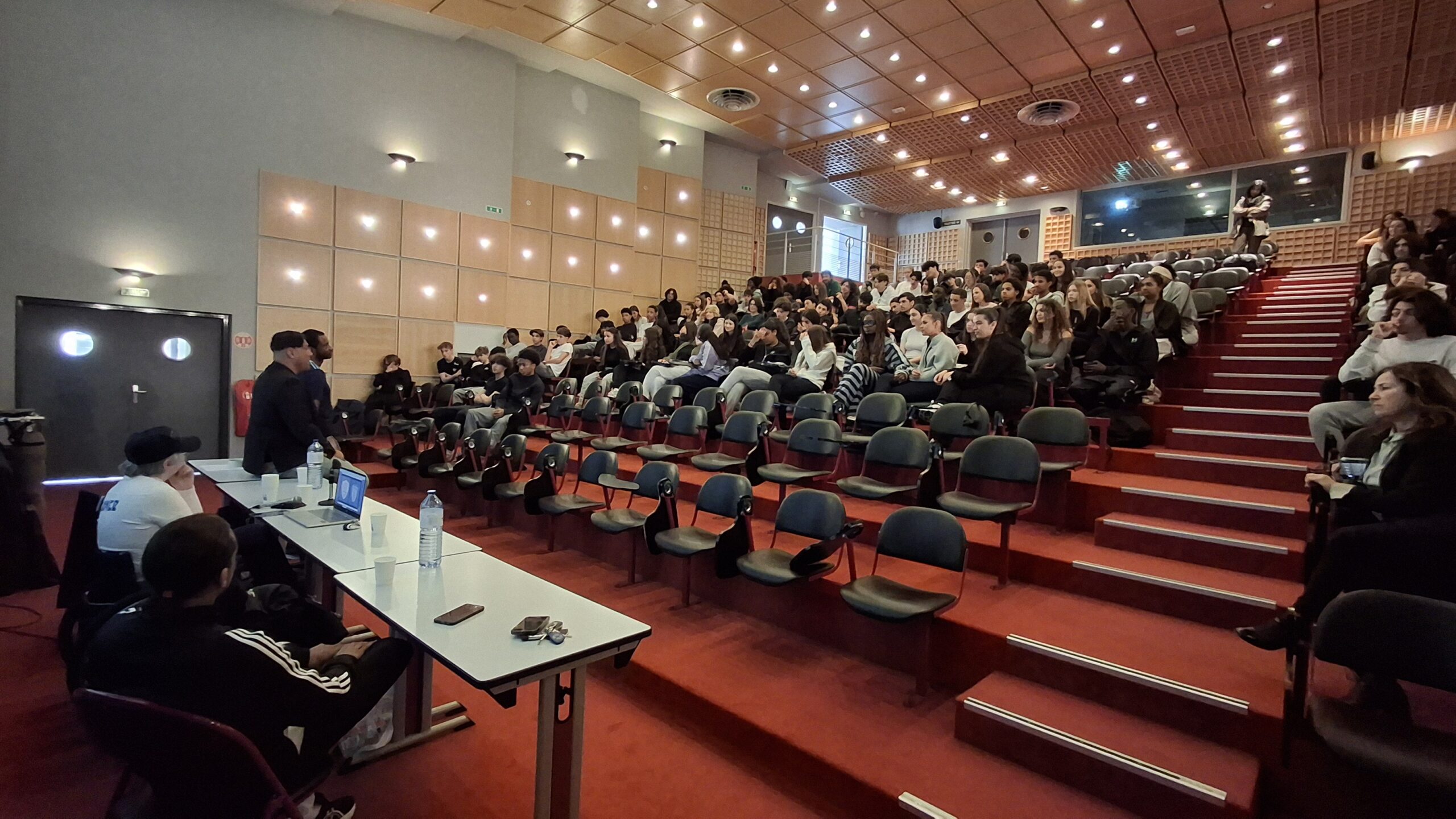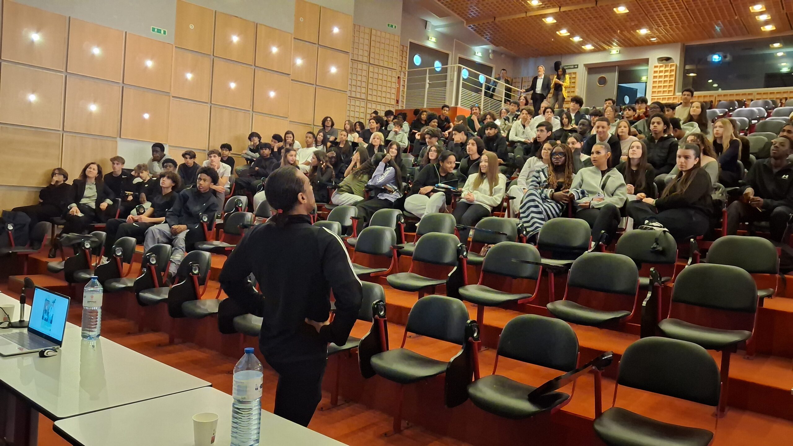 Incroyable rencontre cet après-midi au lycée pour les élèves de 2nde avec Kamel Saouchi, entraîneur du Paris FC Handifoot et président de la KS Academy, accompagné de trois para athlètes : Guy et Michaël, joueurs au Paris FC, ainsi que Laurence, championne d’Europe de parachutisme.