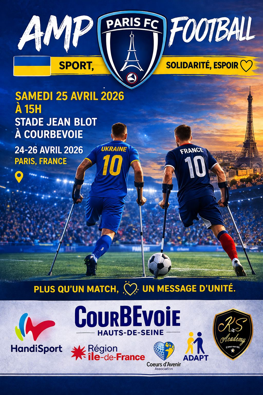 Rendez-vous samedi 25 avril à 15h au stade Jean Blot de Courbevoie pour la rencontre France – Ukraine Handifoot !